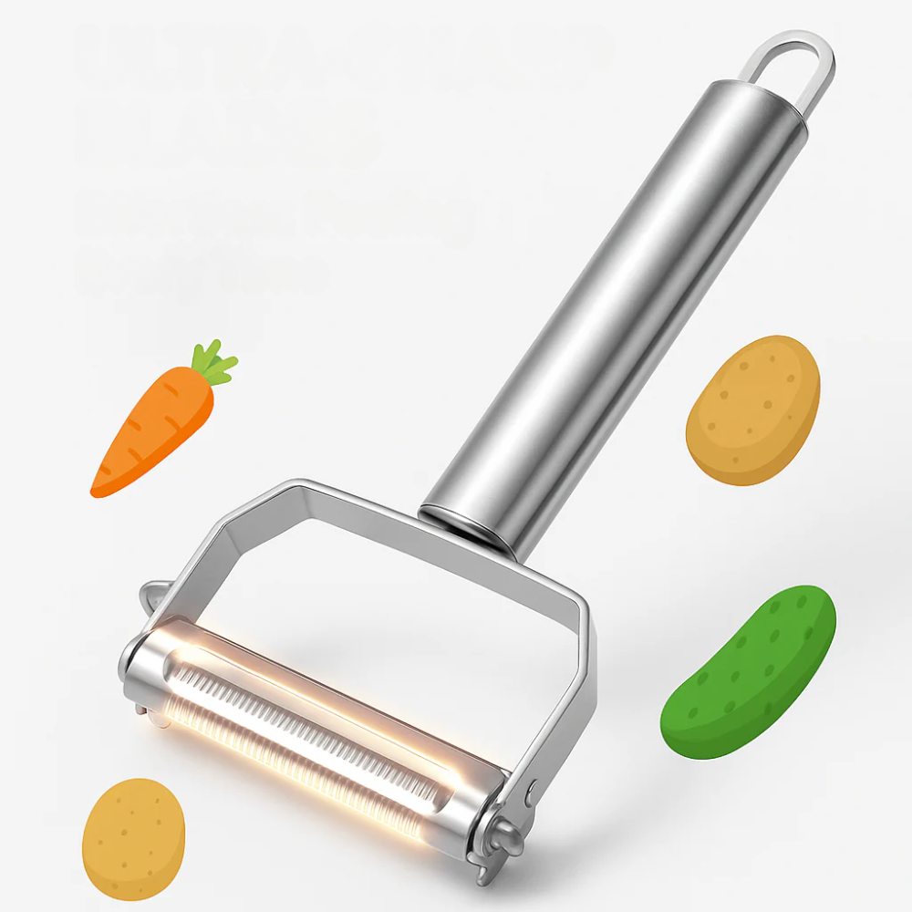 Designed for speed and precision, this 3-in-1 stainless steel veggie peeler makes meal prep effortless. Its sharp, rust-resistant blades handle peeling, slicing, and shredding with ease, making it an essential tool for every kitchen
